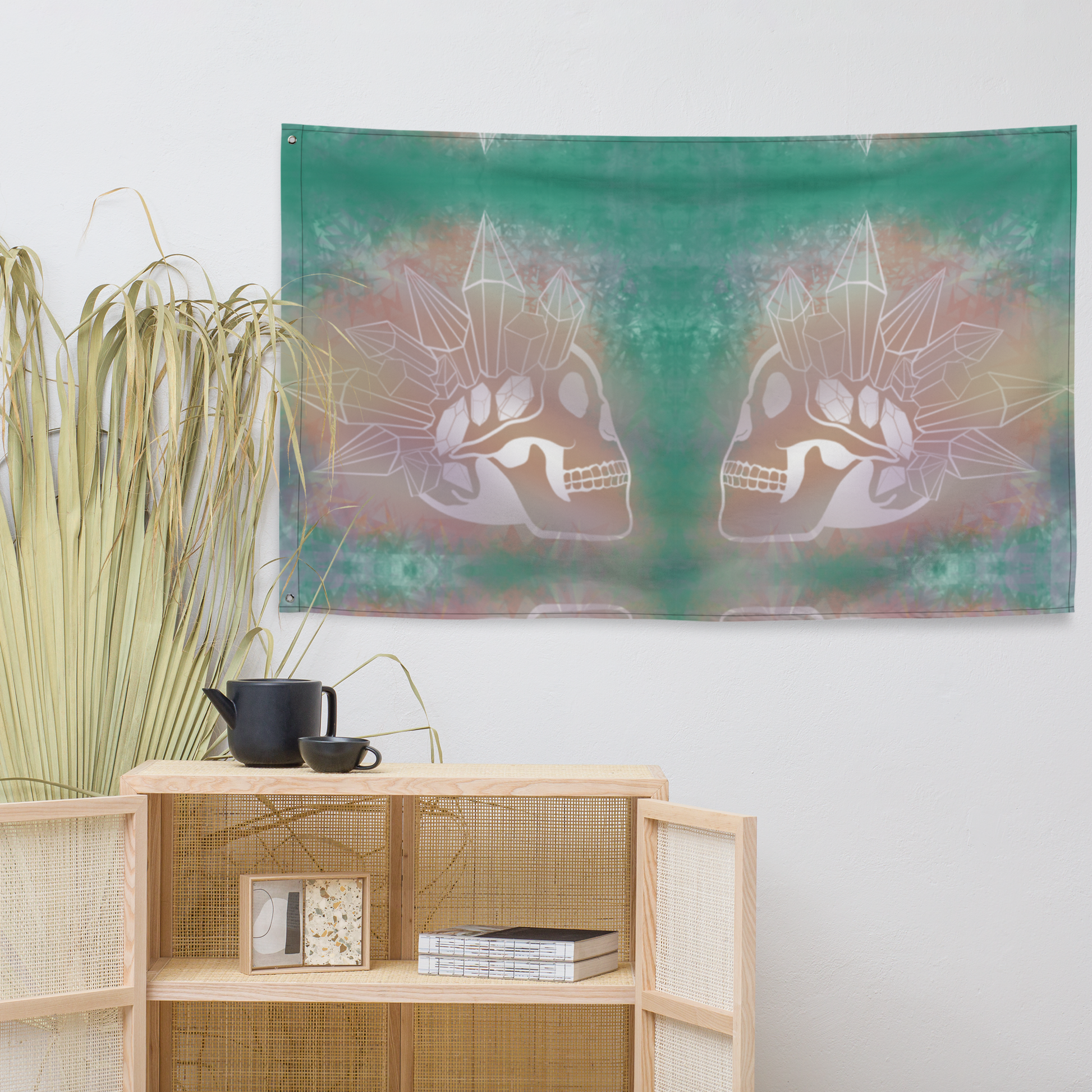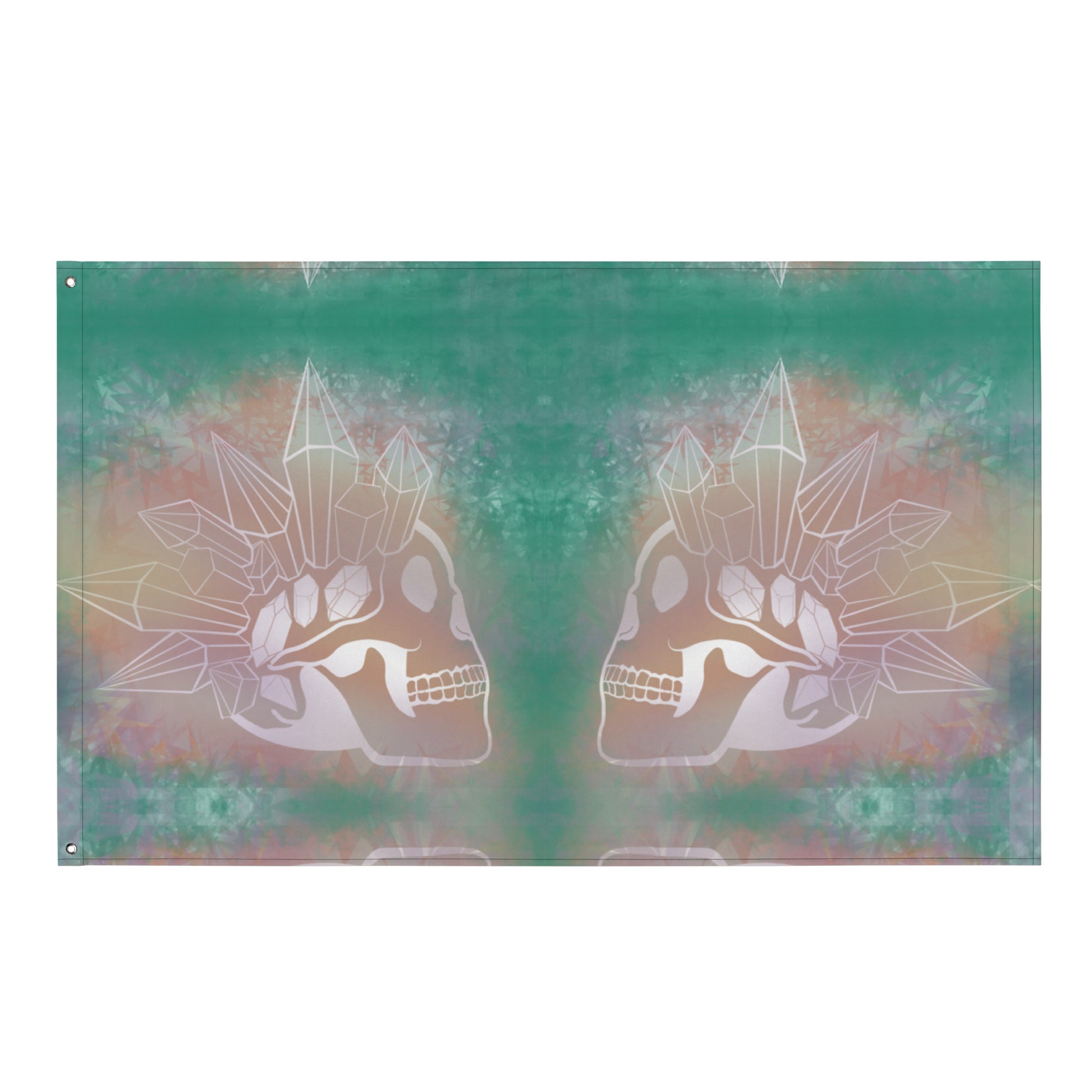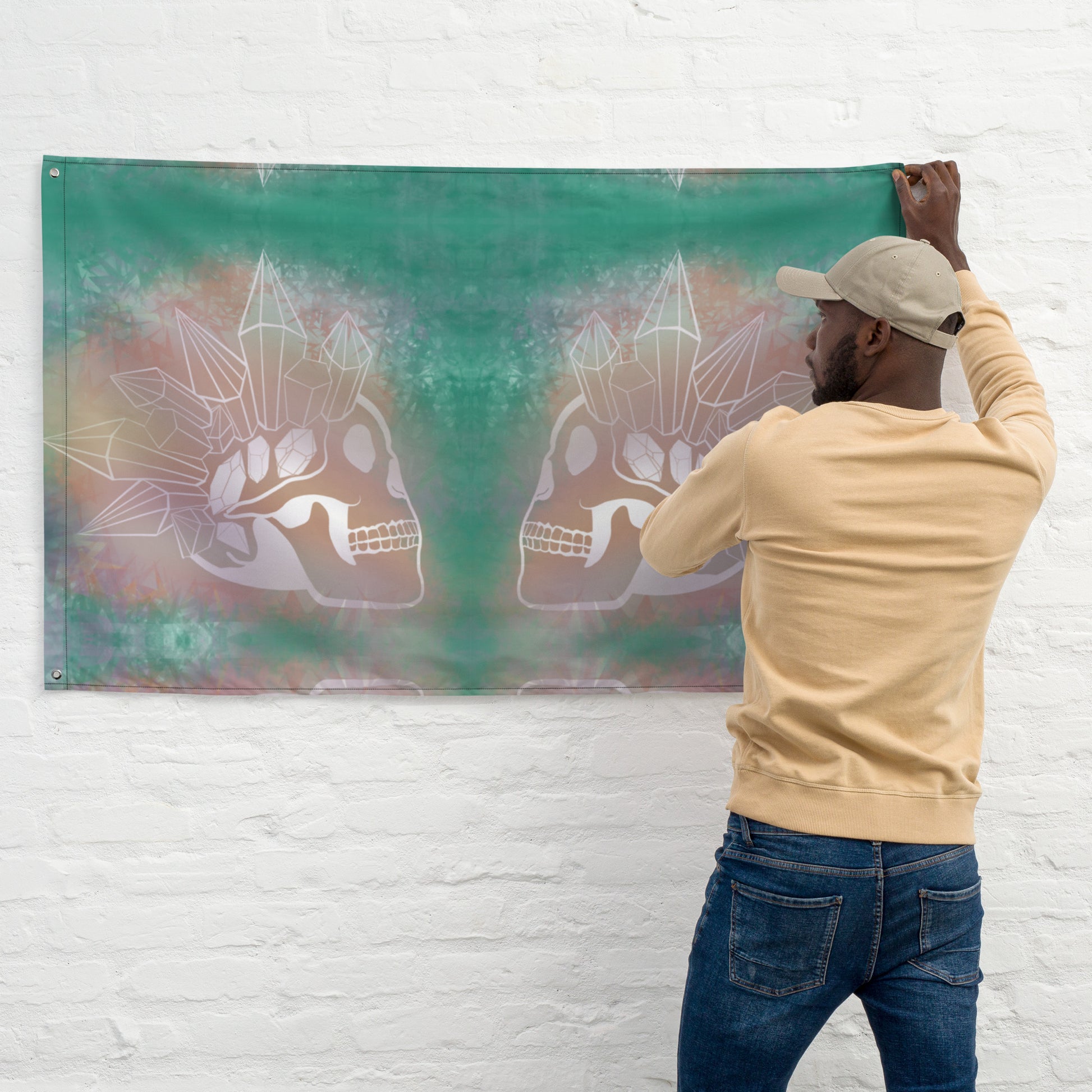 Brighten up your space by adding this dreamy Crystal Skull flag to your wall. Your flag won’t crease or shrink thanks to the polyester material and will last a long time.