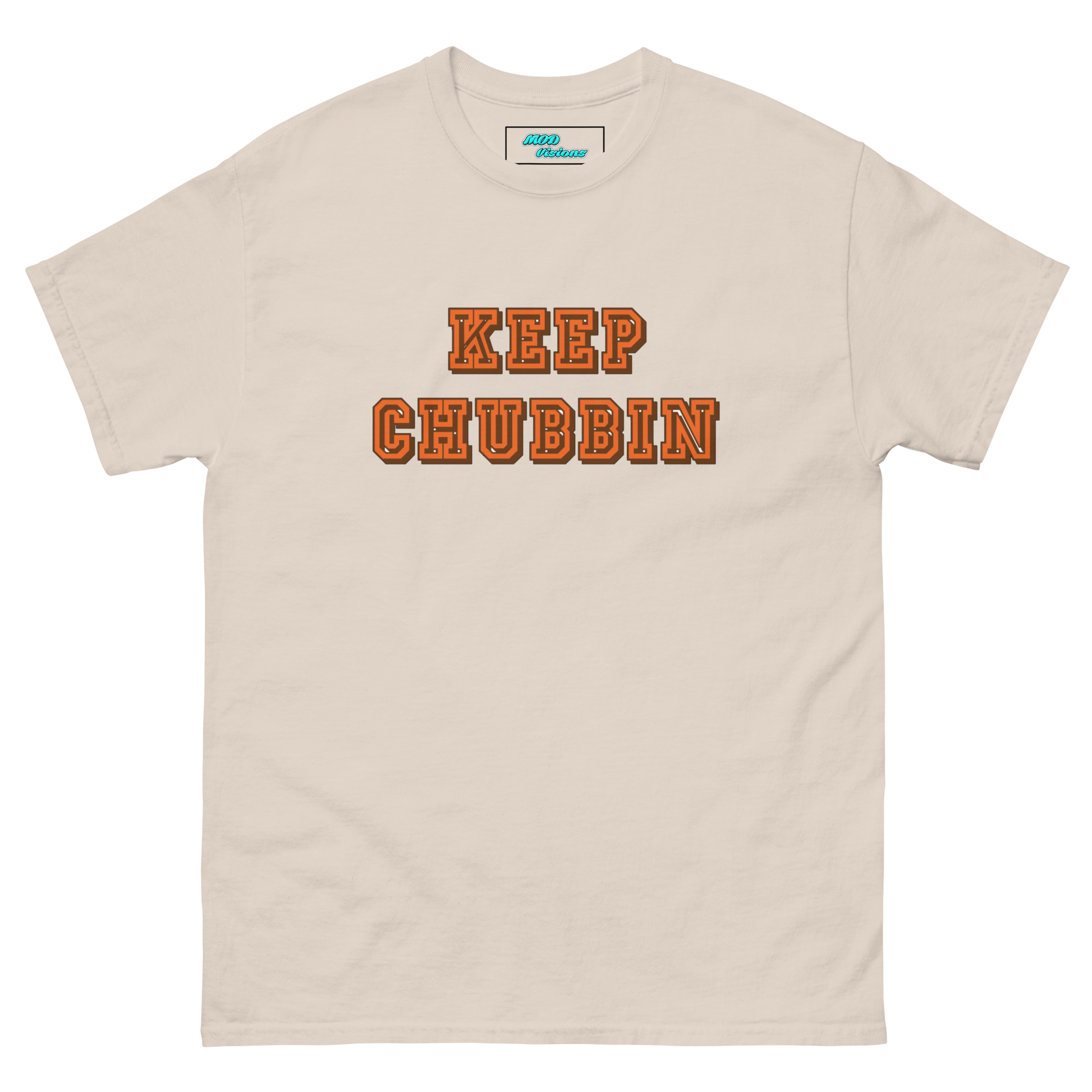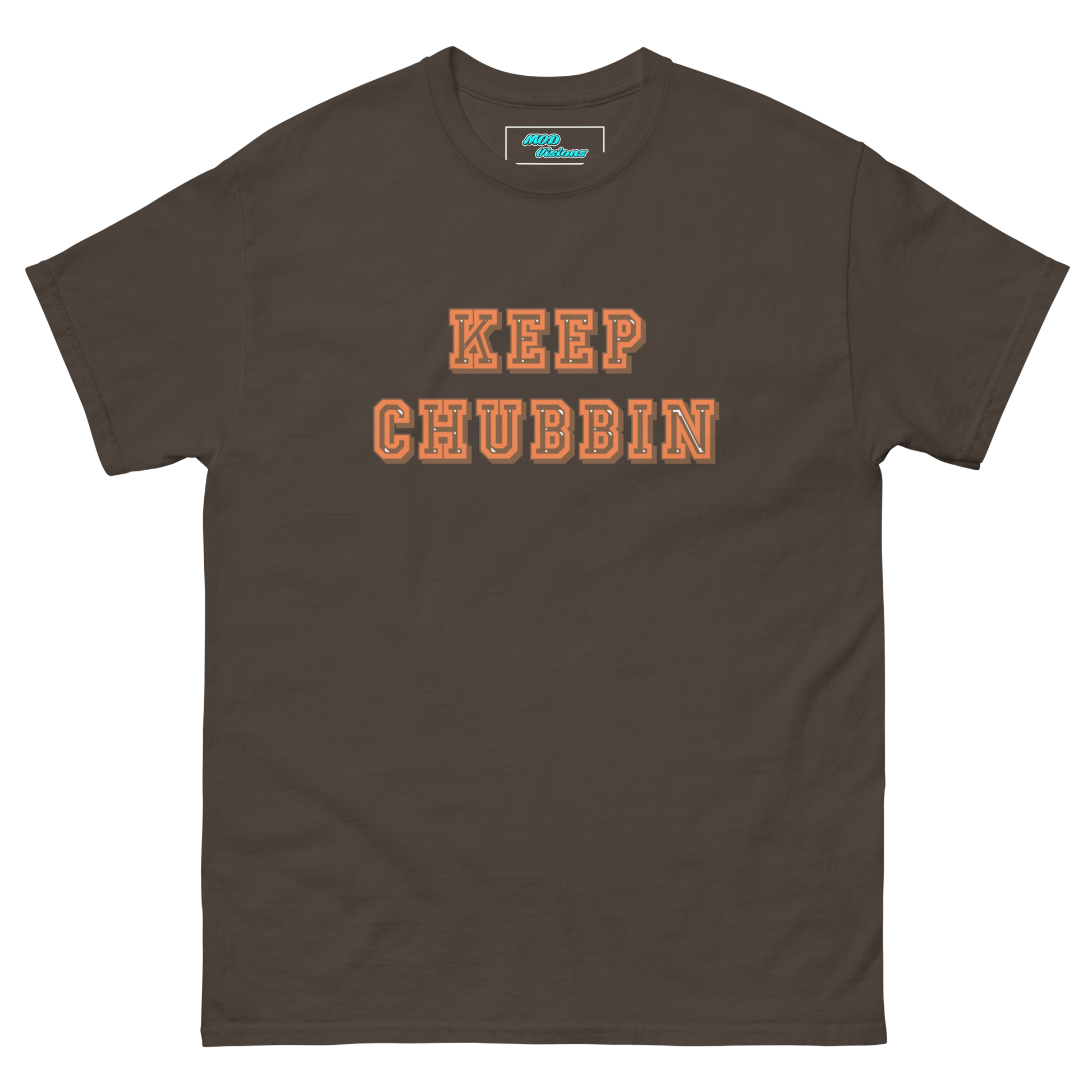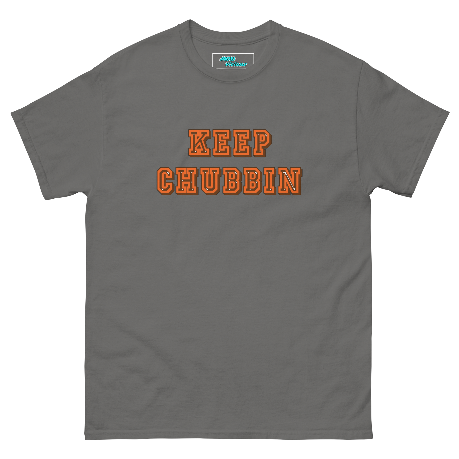Introducing the Keep Chubbin Cleveland Browns T-Shirt β a must-have for die-hard fans of the Browns and one of the league's standout players, Nick Chubb! This exclusive t-shirt, brought to you by Mod Visions, celebrates both the team and the running back with style and flair.