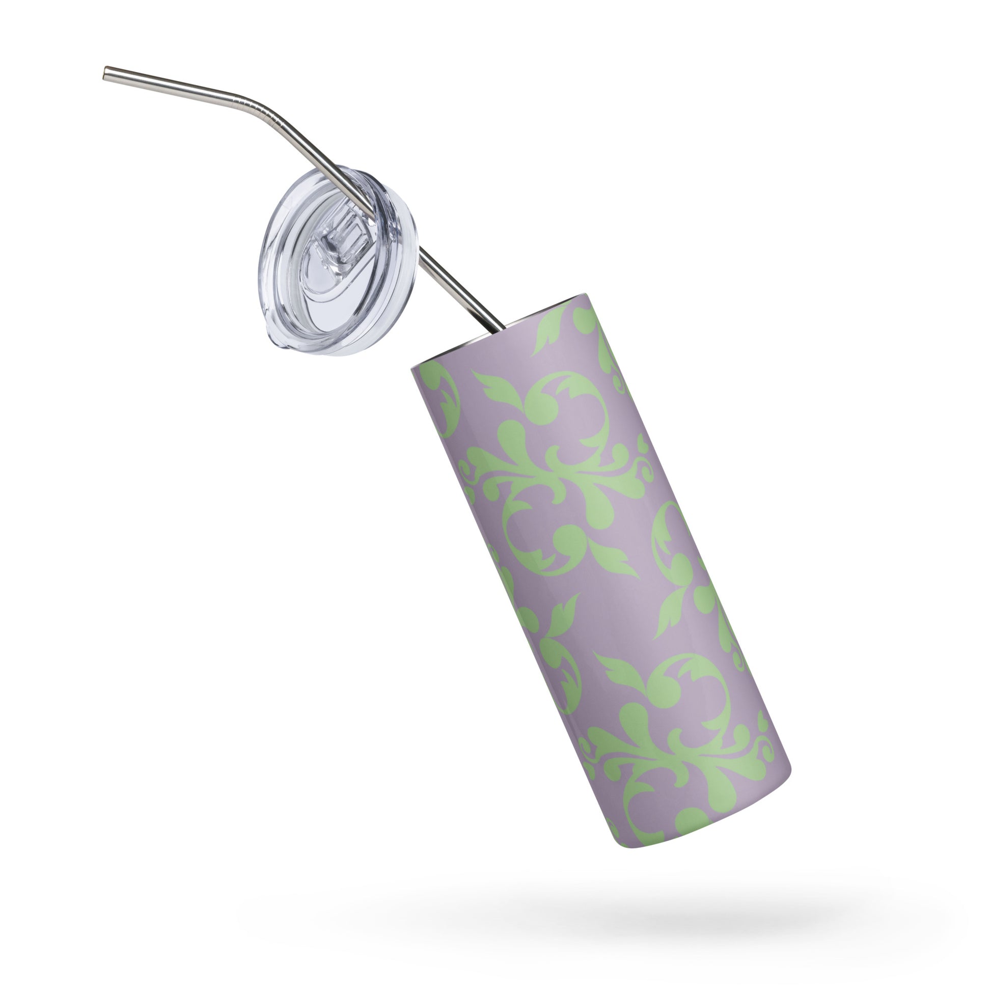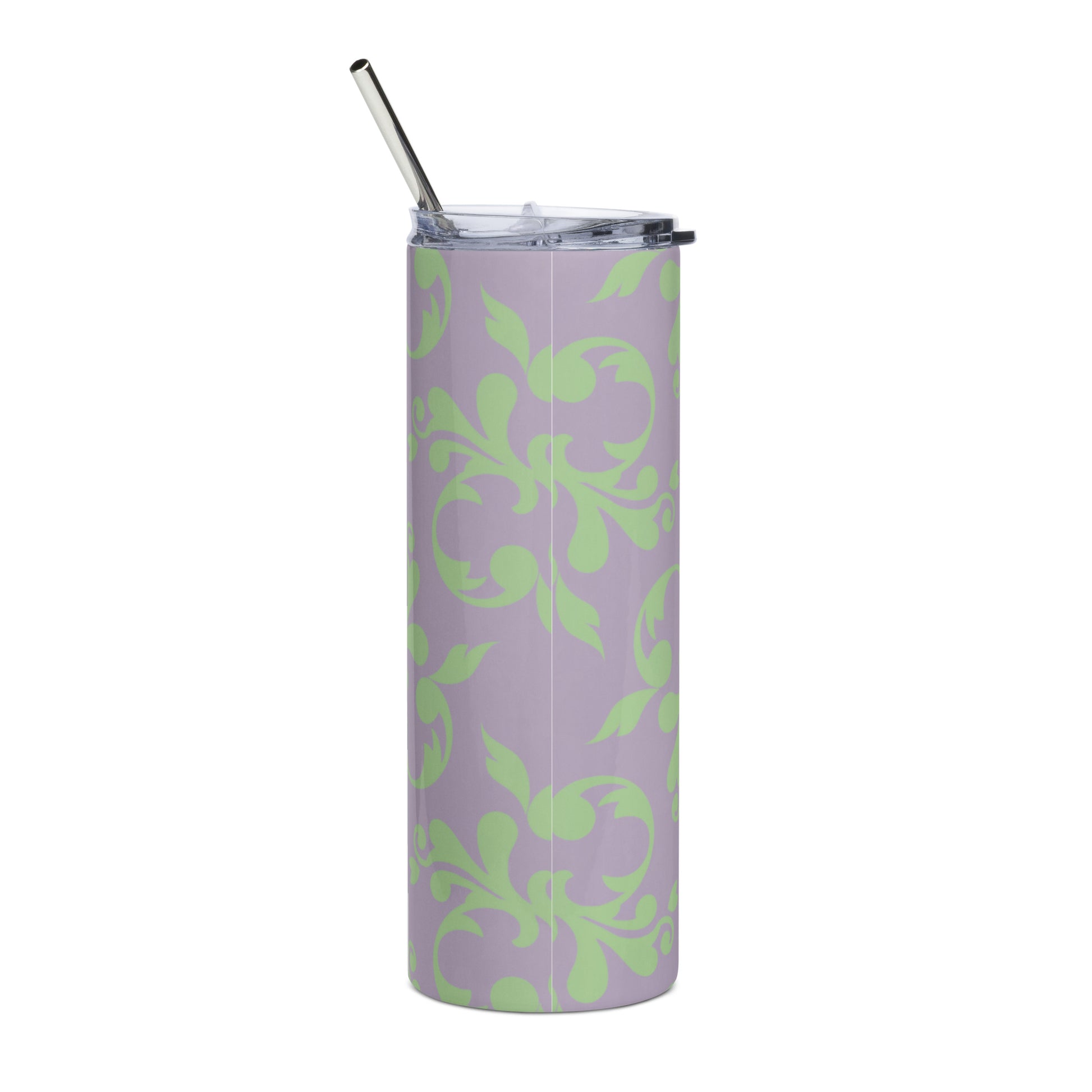 Enjoy this delightful Lavender Bloom Tumbler on the go with this stylish design. This reusable tumbler with a metal straw is the perfect combo for hot or cold drinks at any time of the day.