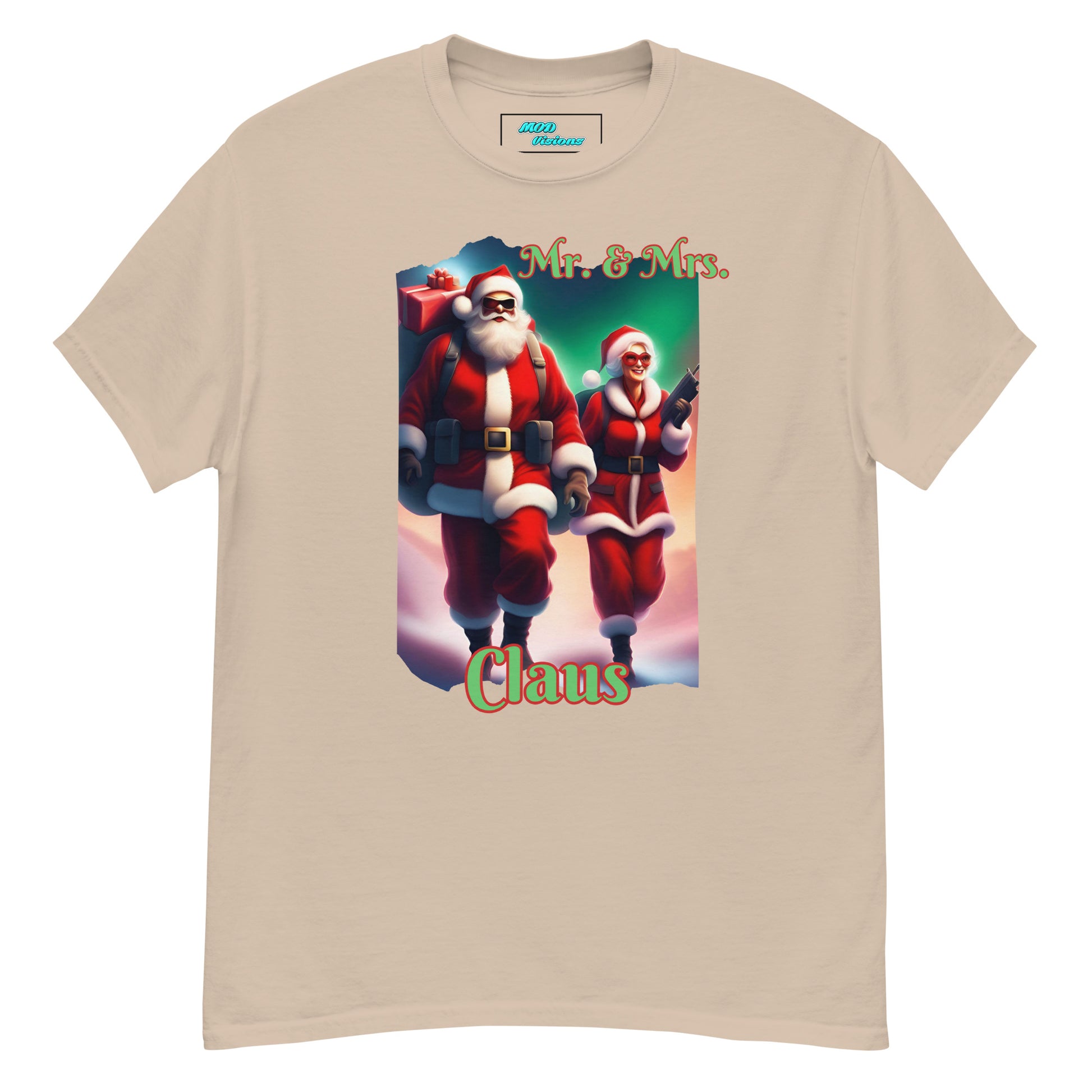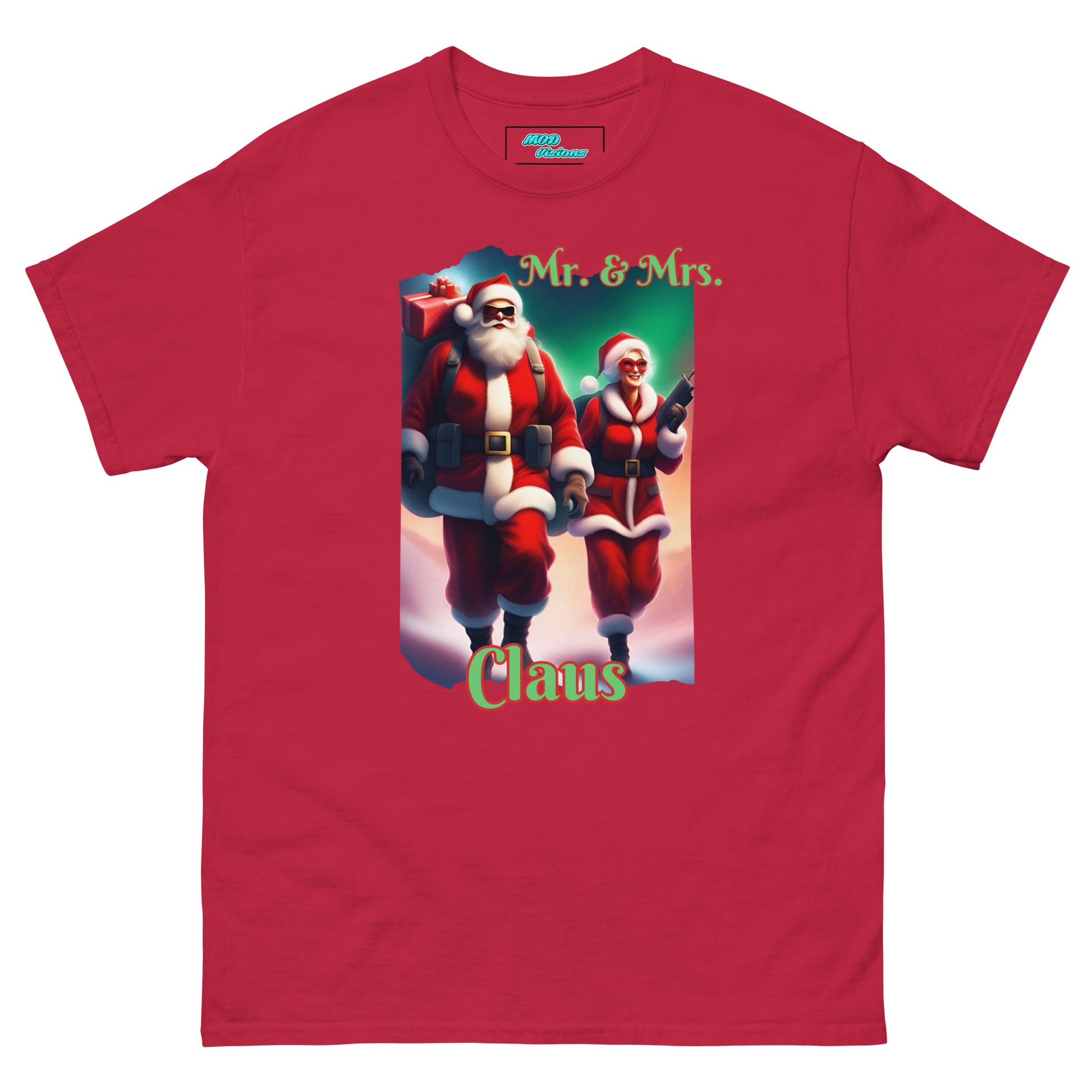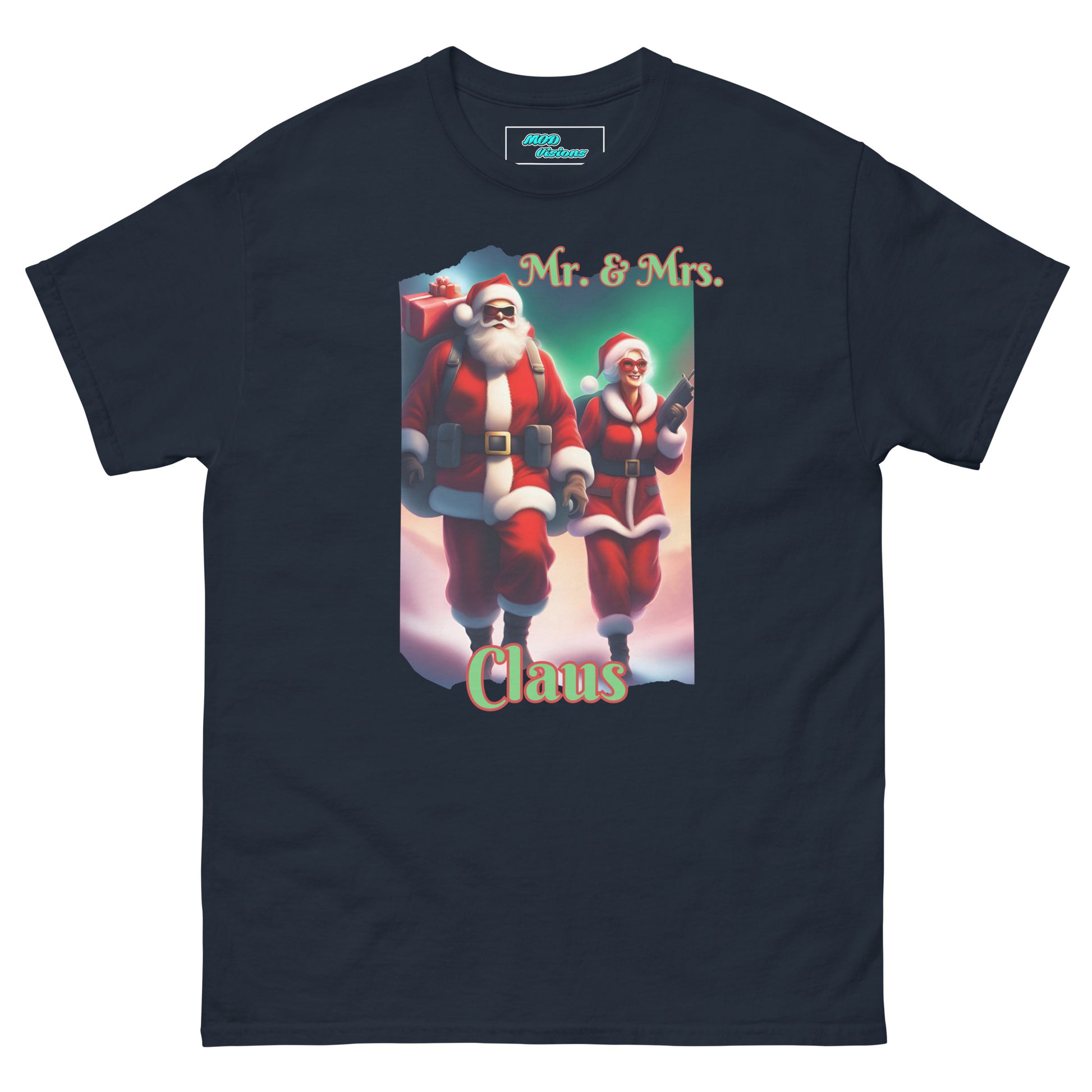Introducing our festive and fearless duo in the Mr. & Mrs. Claus T-shirt! This unique design draws inspiration from the iconic movie "Mr. & Mrs. Smith," giving a thrilling twist to the traditional holiday spirit. Step into the world where Santa and Mrs. Claus are not just spreading joy but are on a mission to deliver gifts with style and a touch of adventure.