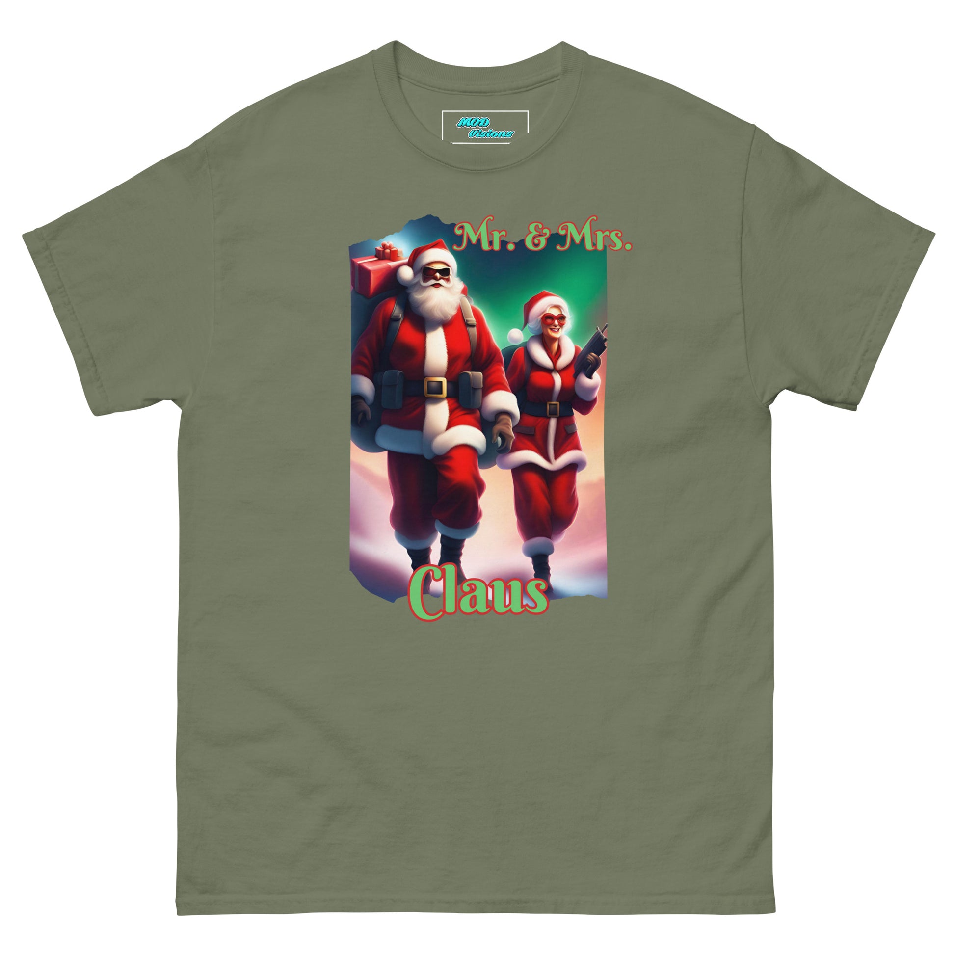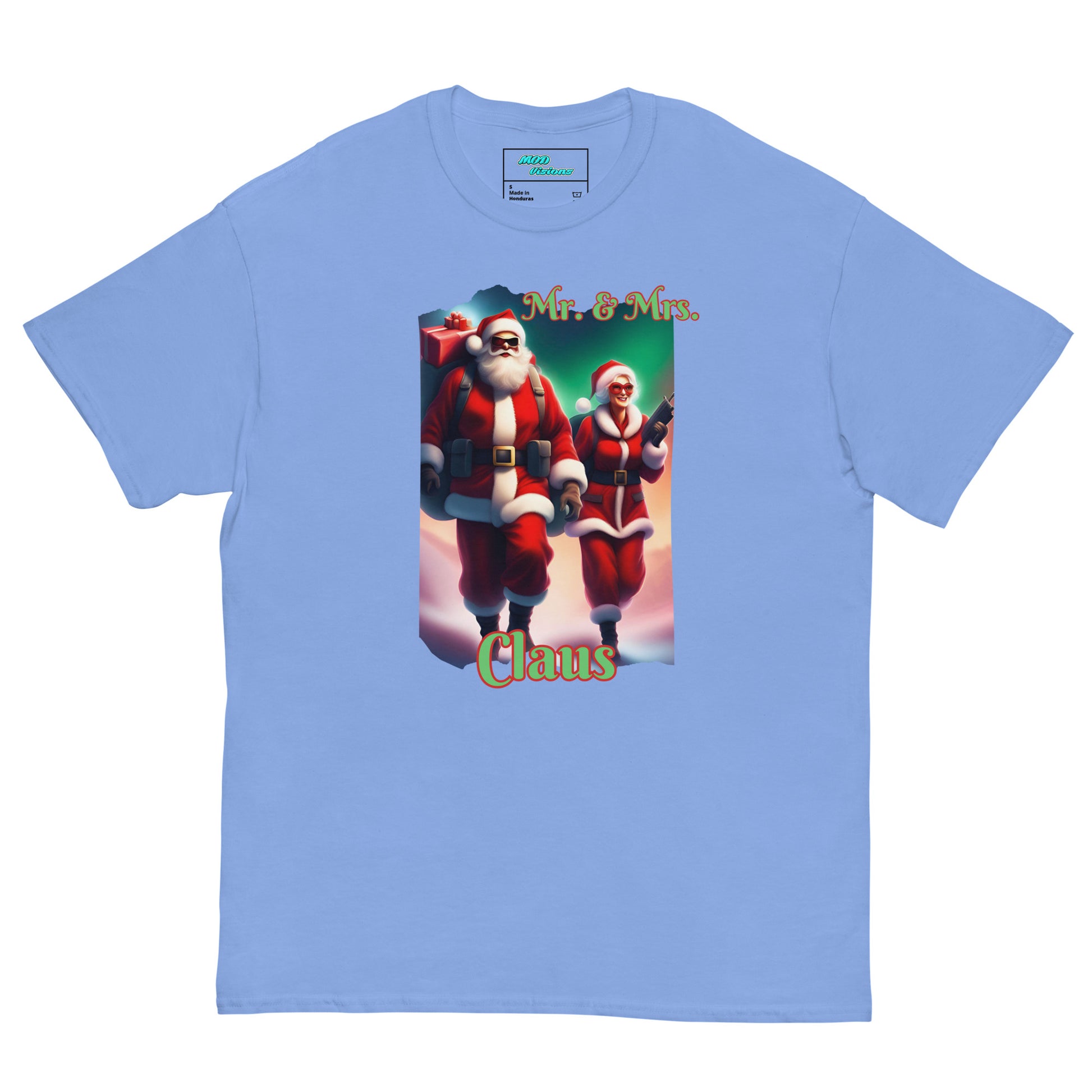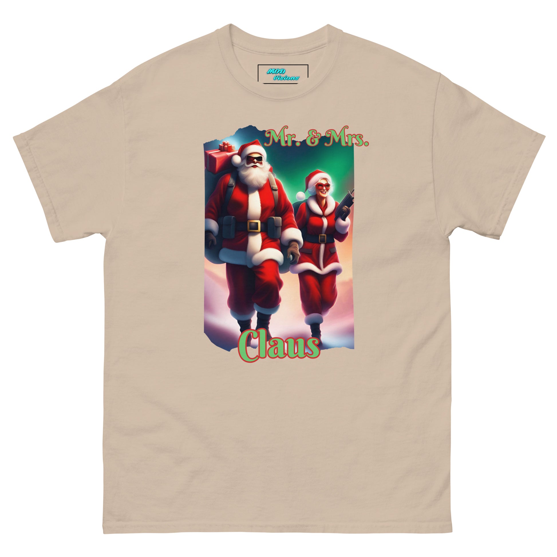 Introducing our festive and fearless duo in the Mr. & Mrs. Claus T-shirt! This unique design draws inspiration from the iconic movie "Mr. & Mrs. Smith," giving a thrilling twist to the traditional holiday spirit. Step into the world where Santa and Mrs. Claus are not just spreading joy but are on a mission to deliver gifts with style and a touch of adventure.