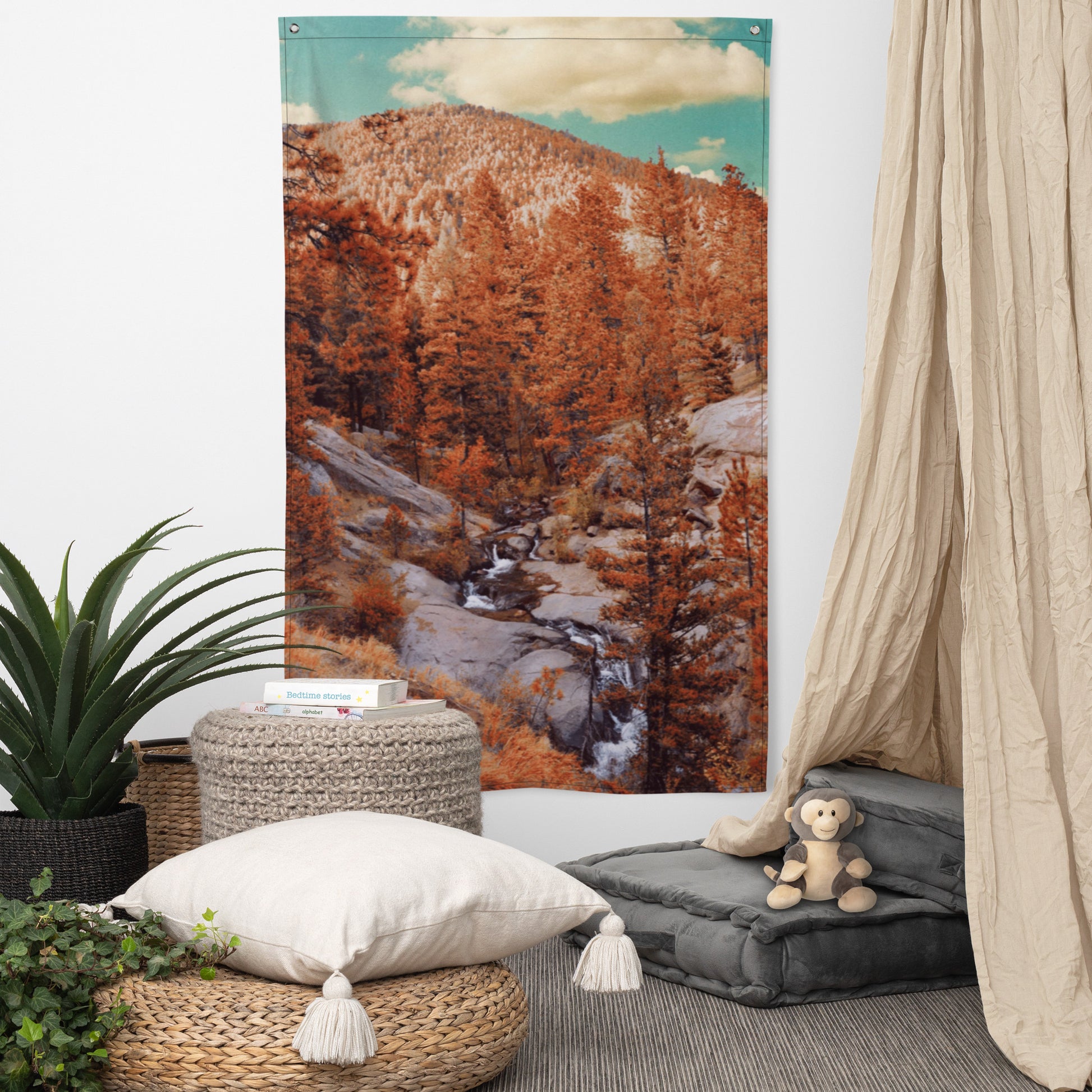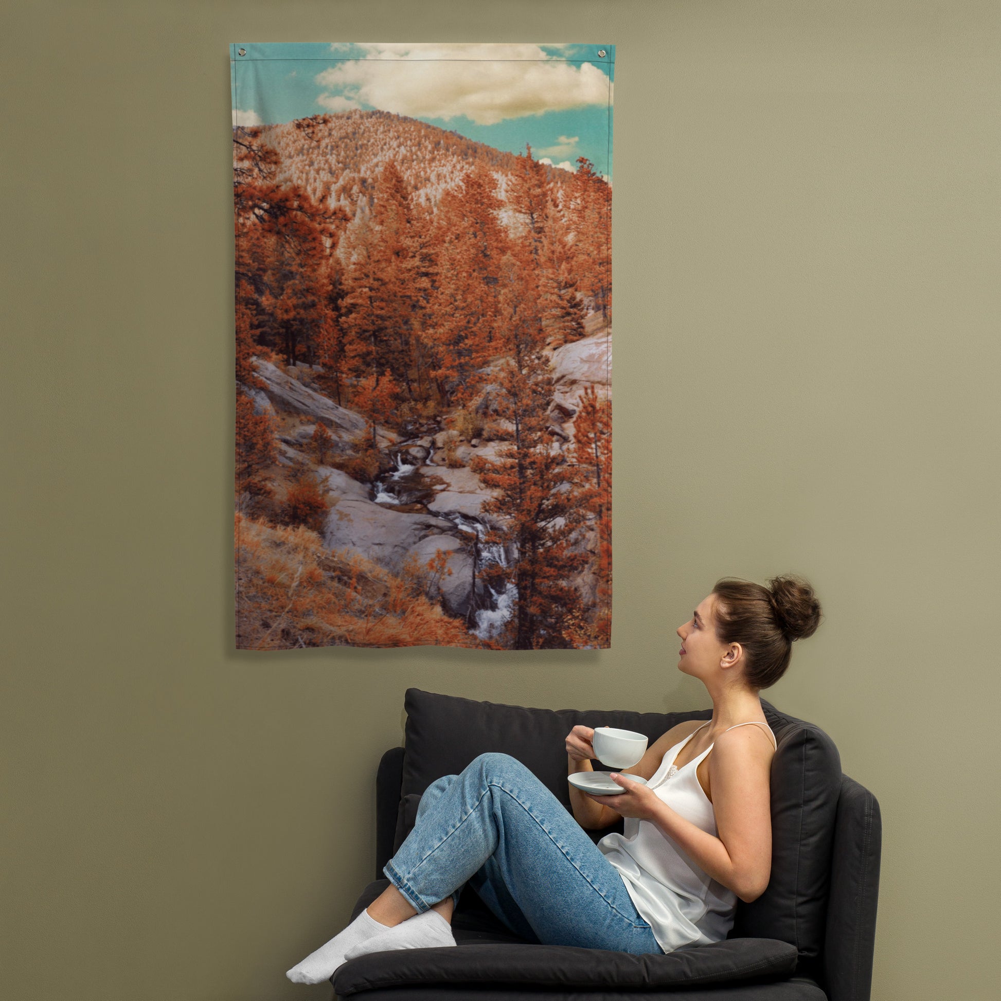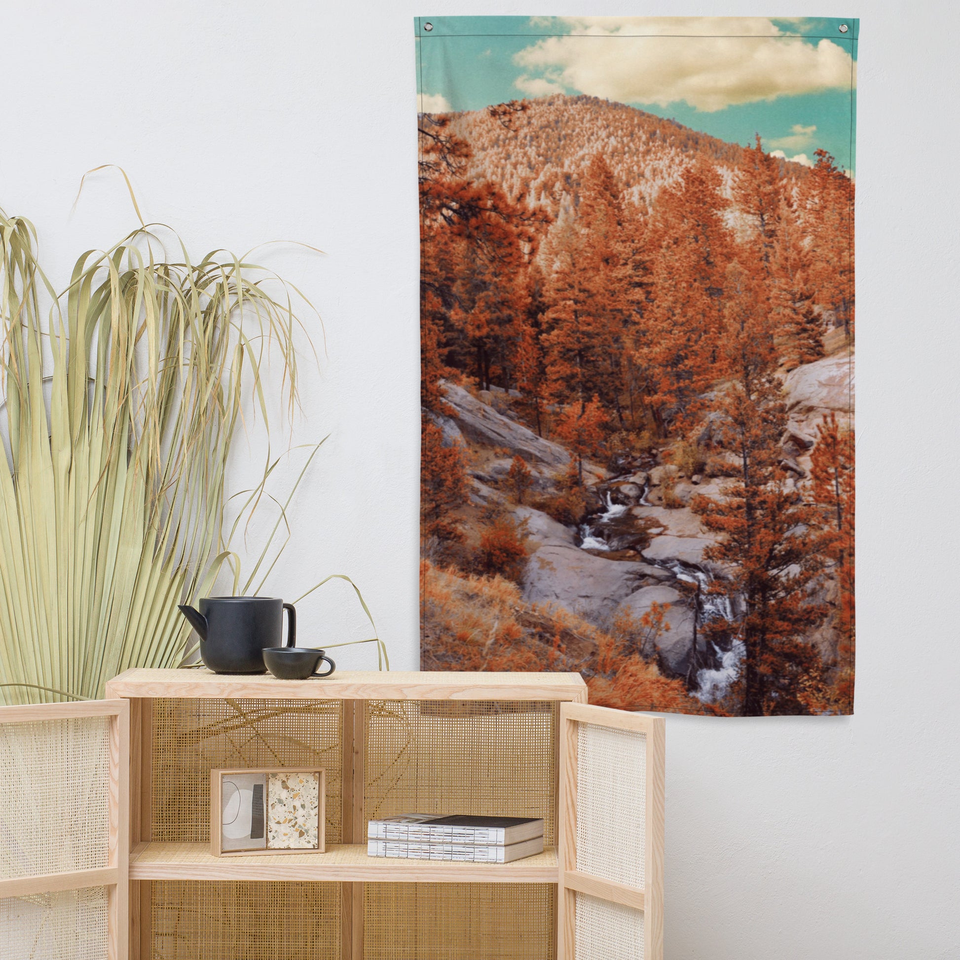 This Rocky Mountain Flag will add some pizzazz to your dorm room, or you can surprise a friend with an awesome gift! This Rocky Mountain Flag is polyester material and iron grommets, definitely made to last.